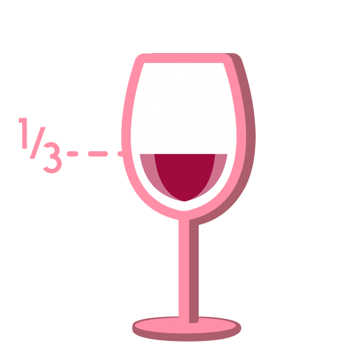 La cantidad aceptable para servir un vino tinto, por lo general, es de unos 150 ml, es decir, 1/3 de la capacidad de la copa. Esto permite que el vino se airee, mostrando así todos sus aromas y sabores. Como la copa es grande, se podría pensar que es poca cantidad, sin embargo, esta medida es la justa, para que el vino muestre todos sus atributos.