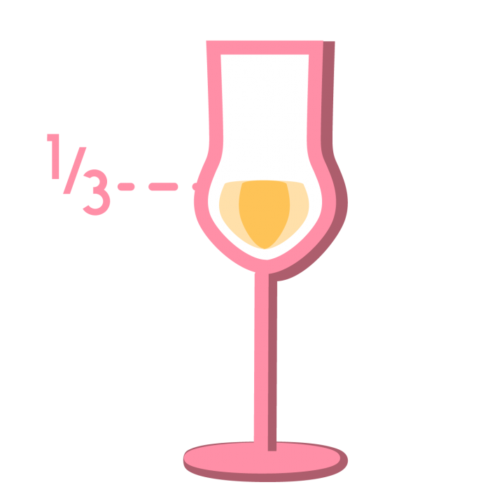 Los vinos blancos no requieren de oxigenación al momento de servirlos, por lo que se recomienda llenar la copa hasta a la mitad. Esto asegura que se mantenga la temperatura correcta durante el tiempo de toma y en caso de querer más, simplemente se vuelve a servir.