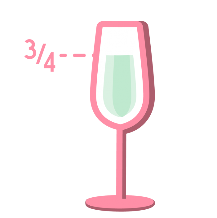 Para los espumantes y vinos espumosos, la norma de servicio es de unos 150 ml. En palabras más simples es llenar 3/4 de la copa flauta. Esta medida es principalmente, para poder observar el ascenso de las burbujas.