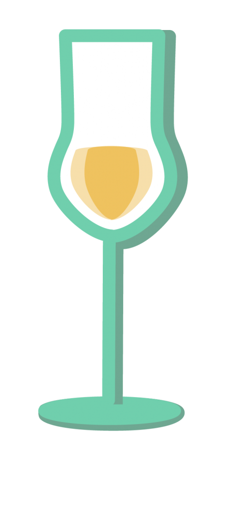 La copa más usada para vinos blancos tiene un cáliz en forma de U que es más pequeño y estrecho que las de vino tinto. Esto es para mantener la temperatura fría lo que permite apreciar mejor las cualidades de las cepas blancas. El tallo por su parte es largo, para que puedas tomar tu copa, sin necesidad de tocar el cuerpo y así tus manos no influyan en la temperatura del vino.