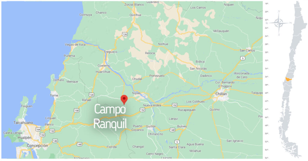 O campo está situado na Cordillera da Costa e pertence à recém criada região de Ñuble. É caracterizado por seus solos e colinas graníticas, com elevada presença de quartzo. O clima temperado dá-nos possibilidades de experimentar e inovar com variedades francesas, italianas e espanholas adaptadas a estas características do Secano Interior de Itata, que devido à sua elevada latitude nos oferece um verão moderado e caráter próprio às suas uvas.Ránquil, graças ao seu interesse em preservar este pedaço da história camponesa, manteve as vinhas centenárias e hoje nos oportuniza projetar um futuro  com castas que acreditamos mostrarão todo o potencial nestes montes graníticos com suas inúmeras exposições e peculiaridades.